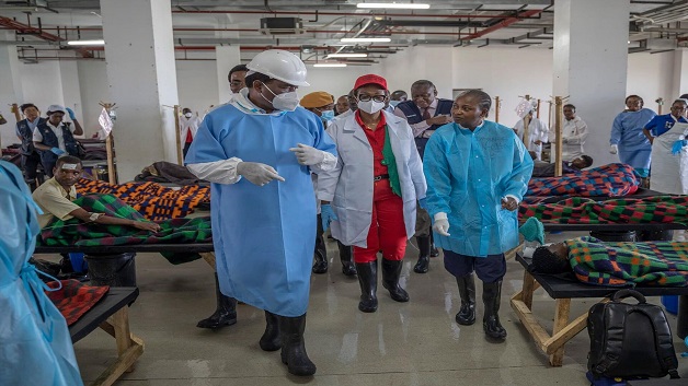 President Hichilema visited the Heroes Stadium Cholera Treatment Centre, which currently has over 1,000 patients, in the capital Lusaka.